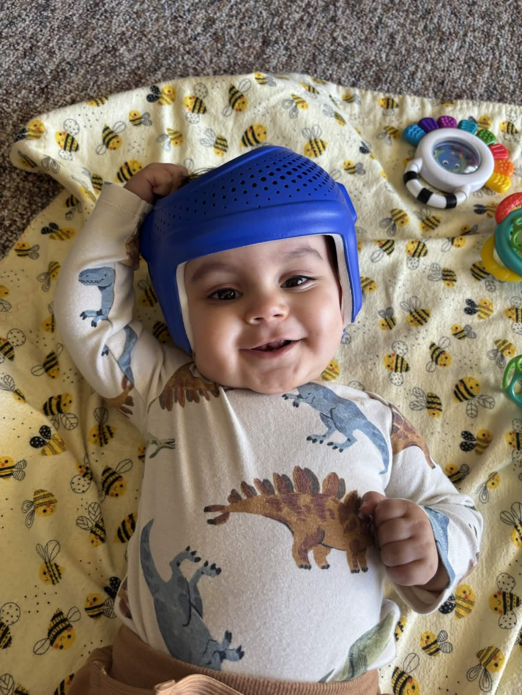With the challenges that James has with mobility and the delays with sitting up, he developed a flat spot on his head called plagiocephaly. It’s not a huge issue, and even babies who aren’t medically complex can have the same thing to varying degrees. Luckily, we still have time where his new helmet can help adjust the growth of his head to be somewhat more symmetrical. Our hope is that be he’s around a year old you wouldn’t even know that he had a helmet in the first place and there won’t be a flat spot!